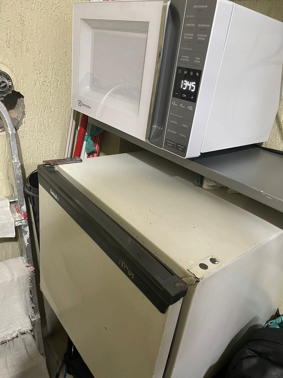 - Geladeira e micro-ondas.