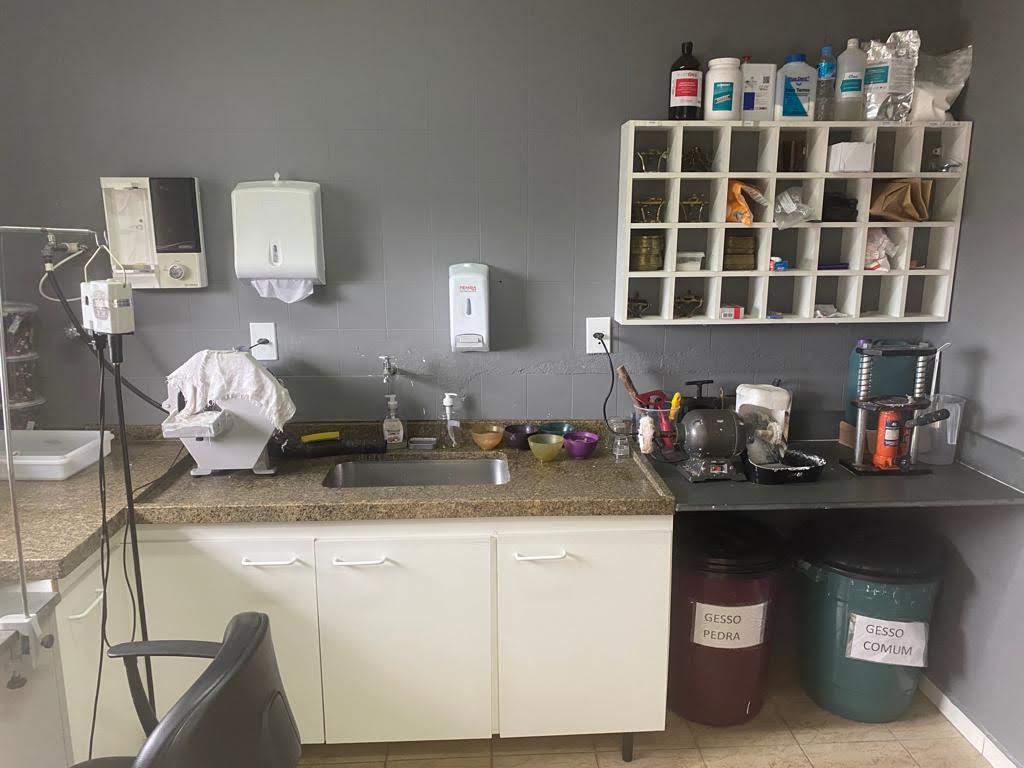 Parte superior com 1 consultório adicional, laboratório de próteses com protético experiente, sala de esterilização e cozinha.